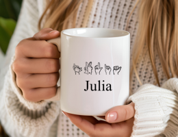 Mok 'handgebaar en letter'